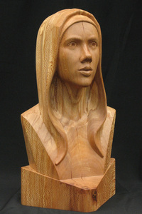 2009Vrouwenkop gesneden uit één stuk plataan (hout).